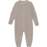 Umar er en beige babydragt i 100% Merino uld med knappelukning på fronten. Dragten har rummelig pasform med opsmøg på både ærmer og ben.