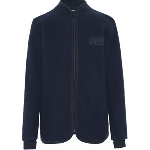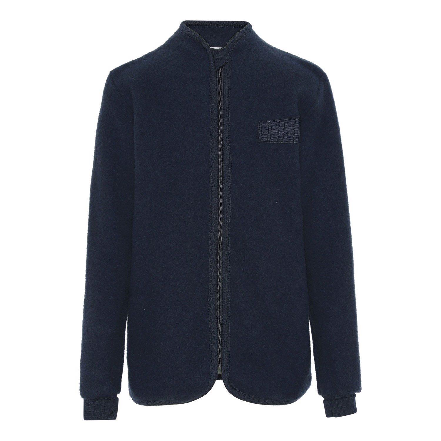 Umbat er en mørkeblå jakke i 100% Merino uld med lynlås lukning på fronten. Jakken har ombuk på ærmerne.