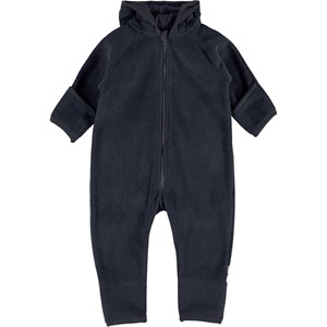 Umeko er en baby fleecedragt i mørkeblå. Dragten har lynlåslukning og en hætte med påsyede små ører. Molo's fleecedragter varmer og virker isolerende. Brug den alene eller som et ekstra lag under flyverdragten på de meget kolde dage. Denne style vil være med fødder fra størrelse 56-74. Uden fødder fra størrelse 80-92.