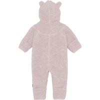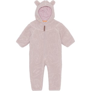 Rosa fleecedragt med praktisk lynlåslukning og hætte med påsyede små ører. Fleecedragten varmer og virker isolerende, og den kan derfor bruges alene eller som et ekstra lag under flyverdragten på de koldeste dage. Denne style leveres med fødder fra størrelse 56-74 og uden fødder fra størrelse 80-92.