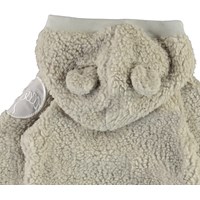 Ummi er en blød baby fleecejakke i knækket hvid. Ummi har hætte med påsatte små ører, samt rib ved hættens kant, ærmeafslutning og bund. Brug den som mellemlægningstrøje eller blot som jakke, da den både virker varmende og isolerende.