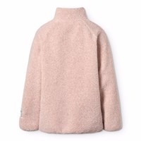 Lyserød blød fleecejakke i genanvendt polyester med matchende ribkanter samt foret med blødt bomuld. Jakken har en høj krave, lynlåslukning, to frontlomme med lynlåslukning, en normal pasform og fungerer både godt alene eller som et ekstra lag under en jakke.