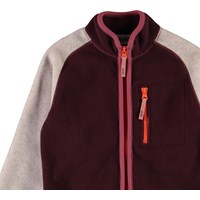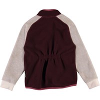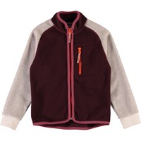 Unna er en fleecejakke i bordeaux med ærmer i lys rosa. Fleecejakken lukkes med lynlås i orange og har en enkelt brystlomme. Molo's fleecejakker varmer og virker isolerende. Brug den alene eller som et ekstra lag under en anden jakke på de meget kolde dage.