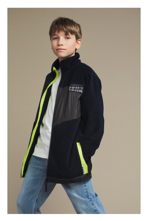 Urbain er Molo's nye cool fleecejakke i mørkeblå med neon grønne detaljer, samt paneler med en skinnende overflade på både front og ryg. Jakken har lynlåslunking og lynlåslommer. Kombiner jakken med matchende flaace bukser.