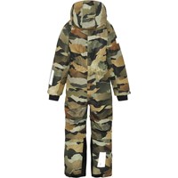 Hux er en flyverdragt med camouflage print. Flyverdragten har mange funktionelle detaljer og egner sig rigtig godt til ski. Hux er perfekt både til de ekstrem kolde og almindelige vintre, grundet dets utrolig høje åndbarhed samt isolering. Den høje åndbarhed er med til at hjælpe kropstemperaturen regulere sig og sørge for, at dit barn hverken bliver for kold eller varm. På varmere vinterdage kan barnet derfor nøjes med tynde lag under og på dage med voldsomme tocifrede minusgrader kan man supplere med et ekstra lag indenunder. Har du er stillesiddende barn vil Hux også være et oplagt valg. Flyverdragten har aftagelig hætte, lynlås ned langs fronten med overfald, reflekser på arme og ben, snefang i benåbning og plads til skistøvler, samt gummistrop under foden. Hux har desuden lommer med lynlås på fronten og en lomme på ærmet til skikortet. Flyverdragten er lavet i et vindtæt, vandtæt og åndbart materiale. Ydermaterialet er fremstillet af 45% recycled polyester, 3M™ Thinsulate™ foret er fremstillet af 83% recycled polyester og inderstoffet af 100% recycled polyester. Dette produkt har en vandafvisende PFC-fri imprægnering (indeholder f.eks. ikke PFOS, PFOA og lignende). Vandsøjletryk: 15.000 mm. Åndbarhed: 15.000 g/m2/24t.
