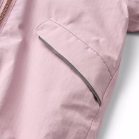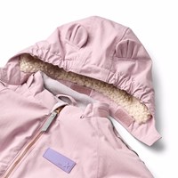 Vandafvisende lyserød flyverdragt til de mindste, fremstillet i genanvendt nylon. Dragten har en aftagelig, foret hætte og en ekstra lang lynlås på fronten, der gør den nem at tage på og af. Elastikken i lænden samt ved ærme- og benafslutninger sørger for, at sne, regn og vind holdes ude, samtidig med at luffer og støvler bliver på plads. Flyverdragten er udstyret med refleksbånd på lommerne og ærmerne, som sikrer ekstra synlighed i trafikken. Derudover har dragten fleecefor ved numse og ryg samt indvendig justerbar elastik i taljen, der giver en tæt og behagelig pasform omkring kroppen.