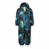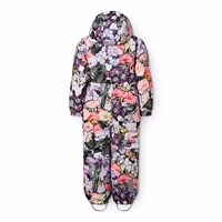Vandafvisende blomstret flyverdragt, fremstillet i genanvendt polyester. Dragten har en aftagelig foret hætte og en lang lynlås på fronten med overfald der gør den nem at tage af og på. Elastikken i lænden samt ved ærme- og benafslutninger sørger for, at sne, regn og vind holdes ude, samtidig med at luffer og støvler bliver på plads. Flyverdragten er udstyret med en refleks på benet, som sikrer ekstra synlighed i trafikken.Derudover har dragten en indvendig justerbar elastik i taljen, der giver en tæt og behagelig pasform omkring kroppen.