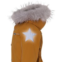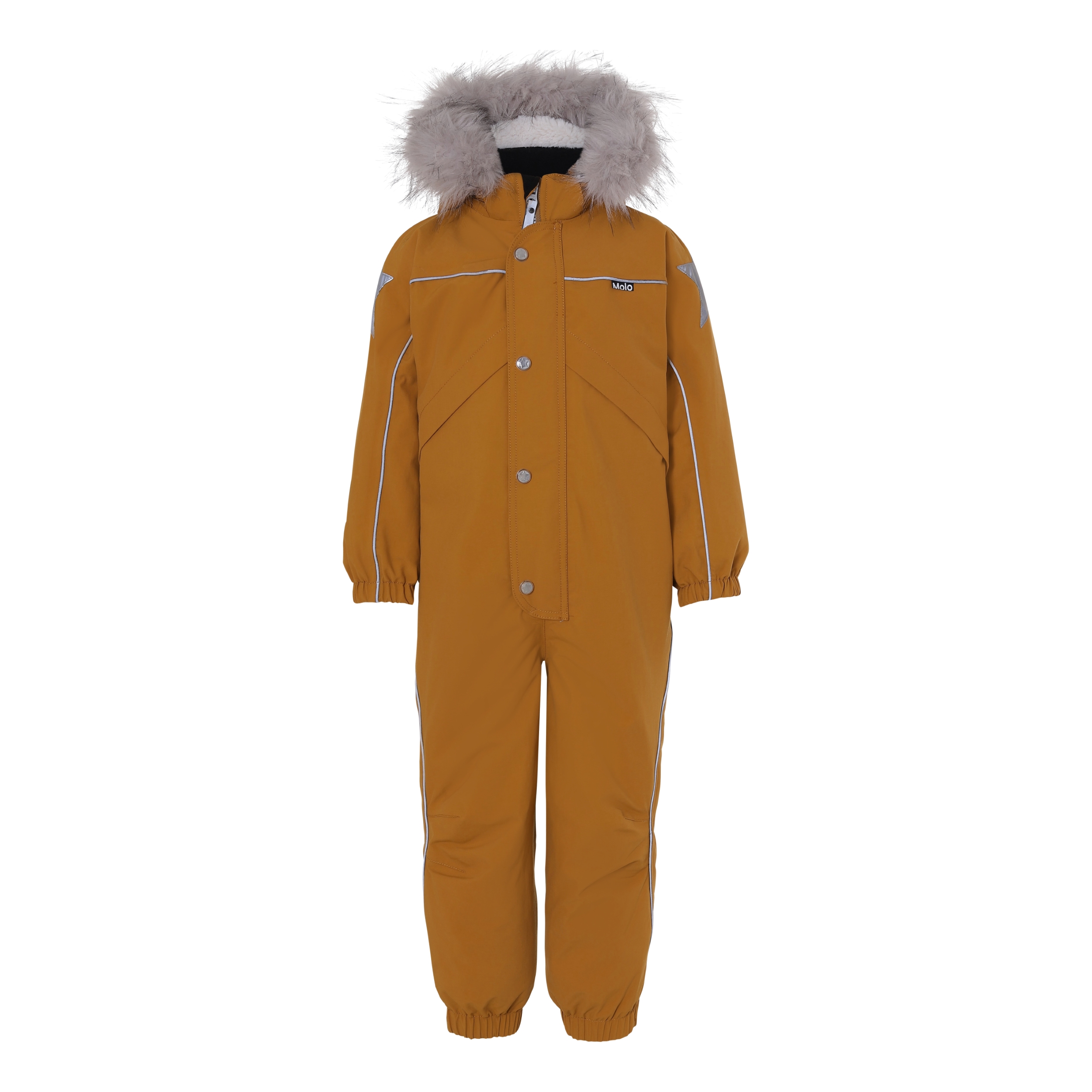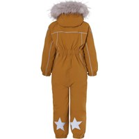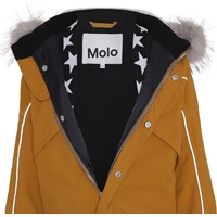 Polaris er en af Molo's favoritter, når det er rigtig koldt og nu er Polaris blevet recycled! Polaris Fur Recycled er en funktionel flyverdragt i sennepsfarve med faux fur pelskrave, refleks pipings og Molo's velkendte stjernereflekser på arme og ben. Polaris har aftagelig hætte, lynlås ned langs fronten med overfald, elastik ved ryggen, snefang i benåbning, samt gummistrop under foden. Flyverdragten er vindtæt, vandtæt og med åndbart 3M™ Thinsulate™ isolering, højkvalitetsfleece på udsatte områder og tapede sømme. Ydermaterialet er fremstillet af 59% recycled nylon fra rest affald. Dette produkt har en vandafvisende PFC-fri imprægnering (indeholder f.eks. ikke PFOS, PFOA og lignende). Vandsøjletryk: 15.000 mm. Åndbarhed: 15.000 g/m2/24t.