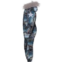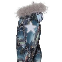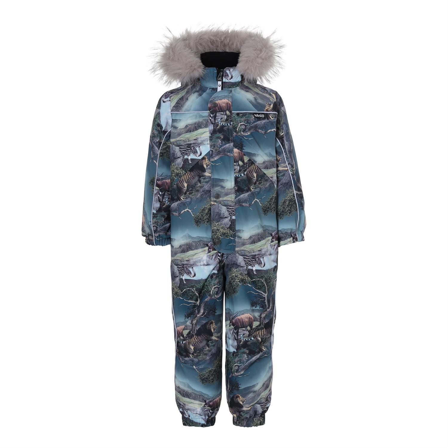 Polaris er en af Molo's favoritter, når det er rigtig koldt. Polaris er en funktionel flyverdragt med print af fremtidens dyr. Flyverdragten har refleks pipings og en faux fur pels krave (kan tages af). Polaris har aftagelig hætte, lynlås ned langs fronten med overfald, Molo's velkendte stjernereflekser på arme og ben, snefang i benåbning, samt gummistrop under foden. Flyverdragten er lavet i et vindtæt, vandtæt og åndbart materiale, og har 3M™ Thinsulate™ isolering, højkvalitetsfleece på udsatte områder og tapede sømme. Dette produkt har en vandafvisende PFC-fri imprægnering (indeholder f.eks. ikke PFOS, PFOA og lignende) og har på baggrund af dette vundet 'Bedst-i-Test' . Vandsøjletrykket og åndbarheden er yderligere forbedret og er nu helt oppe på 15.000 mm i vandsøjletryk og åndbarhed på 15.000 g/m2/24t.