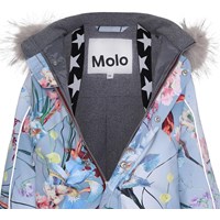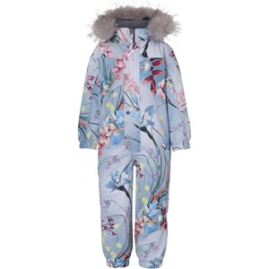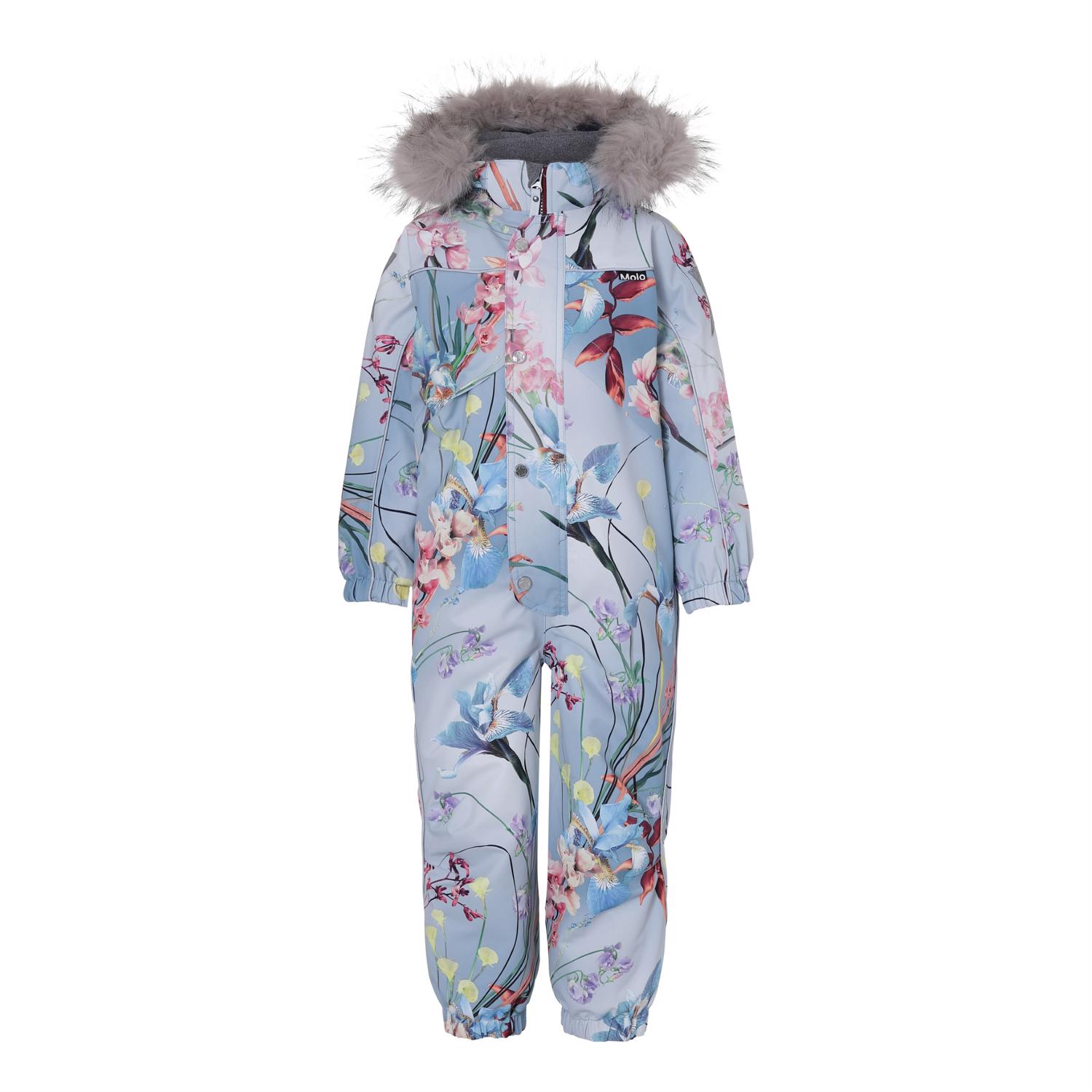 Polaris er en af Molo's favoritter, når det er rigtig koldt. Polaris er en funktionel flyverdragt i lyseblå med blomster print, samt refleks pipings og en faux fur pels krave (kan tages af). Polaris har aftagelig hætte, lynlås ned langs fronten med overfald, Molo's velkendte stjernereflekser på arme og ben, snefang i benåbning, samt gummistrop under foden. Flyverdragten er lavet i et vindtæt, vandtæt og åndbart materiale, og har 3M™ Thinsulate™ isolering, højkvalitetsfleece på udsatte områder og tapede sømme. Dette produkt har en vandafvisende PFC-fri imprægnering (indeholder f.eks. ikke PFOS, PFOA og lignende) og har på baggrund af dette vundet 'Bedst-i-Test' . Vandsøjletrykket og åndbarheden er yderligere forbedret og er nu helt oppe på 15.000 mm i vandsøjletryk og åndbarhed på 15.000 g/m2/24t.