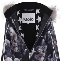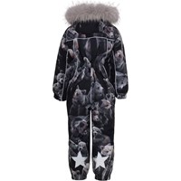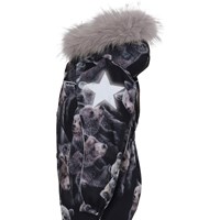 Polaris er en af Molo's favoritter, når det er rigtig koldt. Polaris er en funktionel flyverdragt i bordeaux med print af traner. Flyverdragten har refleks pipings og en faux fur pels krave (kan tages af). Polaris har aftagelig hætte, lynlås ned langs fronten med overfald, Molo's velkendte stjernereflekser på arme og ben, snefang i benåbning, samt gummistrop under foden. Flyverdragten er lavet i et vindtæt, vandtæt og åndbart materiale, og har 3M™ Thinsulate™ isolering, højkvalitetsfleece på udsatte områder og tapede sømme. Dette produkt har en vandafvisende PFC-fri imprægnering (indeholder f.eks. ikke PFOS, PFOA og lignende) og har på baggrund af dette vundet 'Bedst-i-Test' . Vandsøjletrykket og åndbarheden er yderligere forbedret og er nu helt oppe på 15.000 mm i vandsøjletryk og åndbarhed på 15.000 g/m2/24t.
