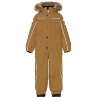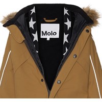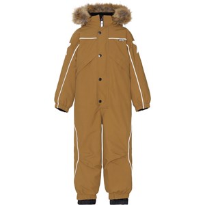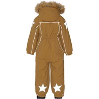 Polaris Fur er en af Molo's favoritter, når det er rigtig koldt. Polaris er en funktionel flyverdragt i brun. Polaris er perfekt både til de ekstrem kolde og almindelige vintre, grundet dets utrolig høje åndbarhed samt isolering. Den høje åndbarhed er med til at hjælpe kropstemperaturen regulere sig og sørge for, at dit barn hverken bliver for kold eller varm. På varmere vinterdage kan barnet derfor nøjes med tynde lag under og på dage med voldsomme tocifrede minusgrader kan man supplere med et ekstra lag indenunder. Har du er stillesiddende barn vil Polaris også være et oplagt valg. Flyverdragten har desuden refleks pipings og en faux furpels krave (kan tages af). Polaris har aftagelig hætte, lynlås ned langs fronten med overfald, Molo's velkendte stjernereflekser på arme og ben, snefang i benåbning, samt gummistrop under foden. Polaris er foruden dens mange velkendte kvaliteter nu også delvist recycled. Ydermaterialet er fremstillet af 59% recycled nylon, 3M™ Thinsulate™ foret er fremstillet af 83% recycled polyester og inderstoffet af 100% recycled polyester. Flyverdragten er lavet i et vindtæt, vandtæt og åndbart materiale og har tapede sømme. Dette produkt har en vandafvisende PFC-fri imprægnering (indeholder f.eks. ikke PFOS, PFOA og lignende) og har på baggrund af dette vundet 'Bedst-i-Test'. Vandsøjletrykket og åndbarheden er yderligere forbedret og er nu helt oppe på 15.000 mm i vandsøjletryk og åndbarhed på 15.000 g/m2/24t.