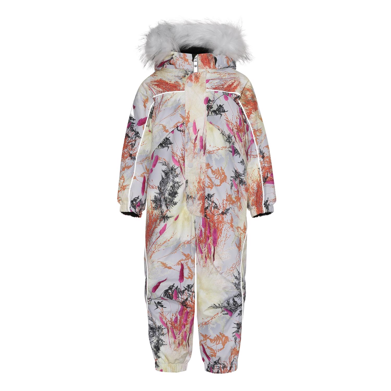 Polaris Fur er en af Molo's favoritter, når det er rigtig koldt. Polaris er foruden dens mange velkendte kvaliteter nu også delvist recycled. Det betyder at ydermaterialet er 51% recycled, mens foret og indermaterialer er 100% recycled og fremstillet af genanvendt polyester. Polaris er en funktionel flyverdragt i lyseblå med print af farvede grene. Flyverdragten har desuden refleks pipings og en faux fur pels krave (kan tages af). Polaris har aftagelig hætte, lynlås ned langs fronten med overfald, Molo's velkendte stjernereflekser på arme og ben, snefang i benåbning, samt gummistrop under foden. Flyverdragten er lavet i et vindtæt, vandtæt og åndbart materialeog har tapede sømme. Dette produkt har en vandafvisende PFC-fri imprægnering (indeholder f.eks. ikke PFOS, PFOA og lignende) og har på baggrund af dette vundet 'Bedst-i-Test' . Vandsøjletrykket og åndbarheden er yderligere forbedret og er nu helt oppe på 15.000 mm i vandsøjletryk og åndbarhed på 15.000 g/m2/24t.