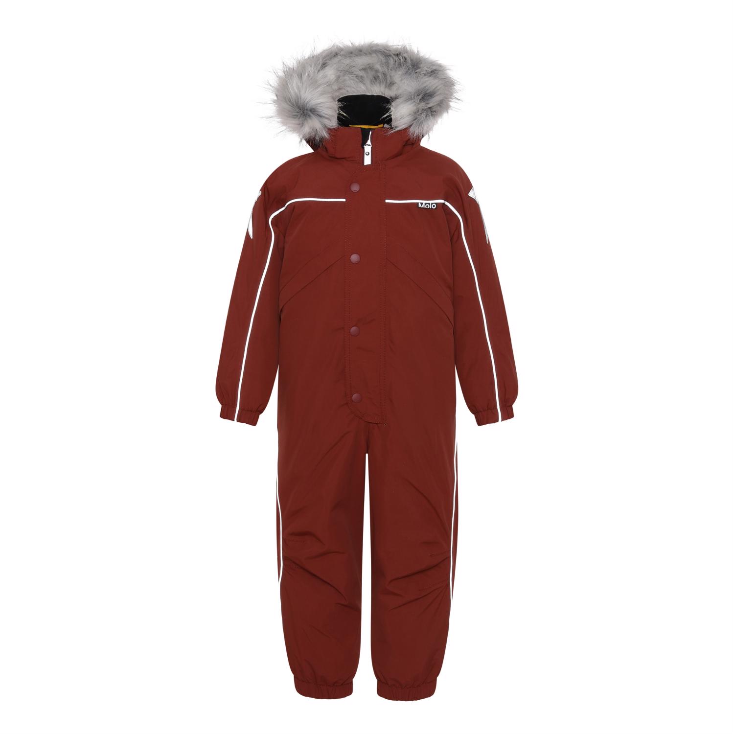 Polaris Fur er en af Molo's favoritter, når det er rigtig koldt. Polaris er foruden dens mange velkendte kvaliteter nu også delvist recycled. Det betyder at ydermaterialet er 51% recycled, mens foret og indermaterialer er 100% recycled og fremstillet af genanvendt polyester. Flyverdragten er i mørkerød med refleks pipings og en faux fur pels krave (kan tages af). Polaris har aftagelig hætte, lynlås ned langs fronten med overfald, Molo's velkendte stjernereflekser på arme og ben, snefang i benåbning, samt gummistrop under foden. Flyverdragten er lavet i et vindtæt, vandtæt og åndbart materialeog har tapede sømme. Dette produkt har en vandafvisende PFC-fri imprægnering (indeholder f.eks. ikke PFOS, PFOA og lignende) og har på baggrund af dette vundet 'Bedst-i-Test' . Vandsøjletrykket og åndbarheden er yderligere forbedret og er nu helt oppe på 15.000 mm i vandsøjletryk og åndbarhed på 15.000 g/m2/24t.