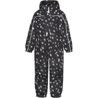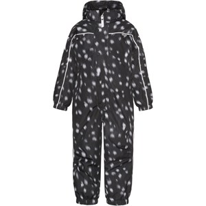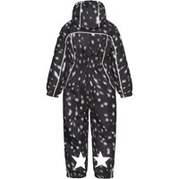 Polaris er en af Molo's favoritter, når det er rigtig koldt. Polaris er foruden dens mange velkendte kvaliteter nu også delvist recycled. Det betyder at ydermaterialet er 51% recycled, mens foret og indermaterialer er 100% recycled og fremstillet af genanvendt polyester. Polaris er en funktionel flyverdragt i sort med hvide pletter, som ligner pelsen på et rådyr. Flyverdragten har desuden refleks pipings, en aftagelig hætte, lynlås ned langs fronten med overfald, Molo's velkendte stjernereflekser på arme og ben, snefang i benåbning, samt gummistrop under foden. Flyverdragten er lavet i et vindtæt, vandtæt og åndbart materialeog har tapede sømme. Dette produkt har en vandafvisende PFC-fri imprægnering (indeholder f.eks. ikke PFOS, PFOA og lignende) og har på baggrund af dette vundet 'Bedst-i-Test' . Vandsøjletrykket og åndbarheden er yderligere forbedret og er nu helt oppe på 15.000 mm i vandsøjletryk og åndbarhed på 15.000 g/m2/24t.