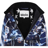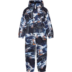 Polaris er en af Molo's favoritter, når det er rigtig koldt. Polaris er foruden dens mange velkendte kvaliteter nu også delvist recycled. Det betyder at ydermaterialet er 51% recycled, mens foret og indermaterialer er 100% recycled og fremstillet af genanvendt polyester. Polaris er en funktionel flyverdragt i blå med print af skilifte. Flyverdragten har desuden refleks pipings, en aftagelig hætte, lynlås ned langs fronten med overfald, Molo's velkendte stjernereflekser på arme og ben, snefang i benåbning, samt gummistrop under foden. Flyverdragten er lavet i et vindtæt, vandtæt og åndbart materialeog har tapede sømme. Dette produkt har en vandafvisende PFC-fri imprægnering (indeholder f.eks. ikke PFOS, PFOA og lignende) og har på baggrund af dette vundet 'Bedst-i-Test' . Vandsøjletrykket og åndbarheden er yderligere forbedret og er nu helt oppe på 15.000 mm i vandsøjletryk og åndbarhed på 15.000 g/m2/24t.