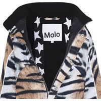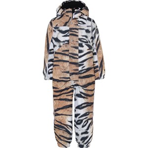 Polaris er en af Molo's favoritter, når det er rigtig koldt. Polaris er en funktionel flyverdragt i tiger print med refleks pipings og Molo's velkendte stjernereflekser på arme og ben. Polaris har aftagelig hætte, lynlås ned langs fronten med overfald, elastik ved ryggen, snefang i benåbning, samt gummistrop under foden. Flyverdragten er lavet i et vindtæt, vandtæt og åndbart materiale, og har 3M™ Thinsulate™ isolering, højkvalitetsfleece på udsatte områder og tapede sømme. Dette produkt har en vandafvisende PFC-fri imprægnering (indeholder f.eks. ikke PFOS, PFOA og lignende) og har på baggrund af dette vundet 'Bedst-i-Test'. Vandsøjletrykket og åndbarheden er yderligere forbedret og er nu helt oppe på 15.000 mm i vandsøjletryk og åndbarhed på 15.000 g/m2/24t.
