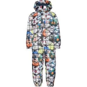 Polly er en funktionel heldragt med print af fodbolde, som egner sig perfekt til forår og efterår, hvor vejret kan være meget omskifteligt. Dragten er god til til det meste vejr, men perfekt når det regner og blæser og er dejlig at have på, da dragten også har en god åndbarhed. Dragten har aftagelig hætte, lynlås ned langs fronten med overslag, der afskærmer for vind og vand, elastik i taljen bagpå, samt adskillelige reflekser. Dette produkt har en vandafvisende PFC-fri imprægnering (indeholder f.eks. ikke PFOS, PFOA og lignende). Vandsøjletryk: 5.000 mm. Åndbarhed: 5.000 g/m2/24t
