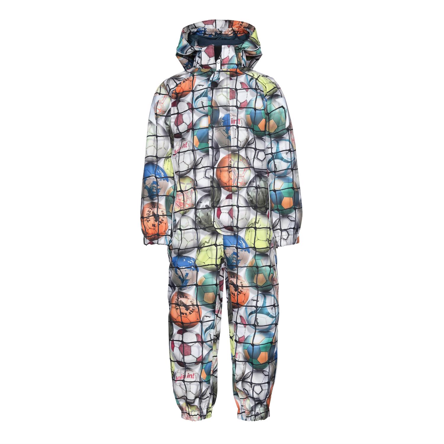 Polly er en funktionel heldragt med print af fodbolde, som egner sig perfekt til forår og efterår, hvor vejret kan være meget omskifteligt. Dragten er god til til det meste vejr, men perfekt når det regner og blæser og er dejlig at have på, da dragten også har en god åndbarhed. Dragten har aftagelig hætte, lynlås ned langs fronten med overslag, der afskærmer for vind og vand, elastik i taljen bagpå, samt adskillelige reflekser. Dette produkt har en vandafvisende PFC-fri imprægnering (indeholder f.eks. ikke PFOS, PFOA og lignende). Vandsøjletryk: 5.000 mm. Åndbarhed: 5.000 g/m2/24t