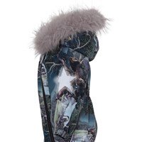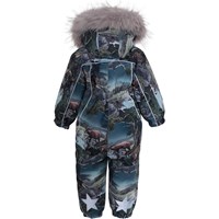 Pyxis er en funktionel flyverdragt til babyer og små børn i bordeaux med print af fremtidens dyr. Flyverdragten har aftagelig hætte med faux fur pelskant (som også kan tages af). Flyverdragten har to skrå lynlåse, der gør det nemt at få dragten af og på, snefang i benåbning, gummistrop under foden og Molo's velkendte refleksstjerne på overarme og bag på benene. Flyverdragten er lavet i et vindtæt, vandtæt og åndbart materiale, har 3M™ Thinsulate™ isolering, højkvalitetsfleece på udsatte områder og tapede sømme. Dette produkt har en vandafvisende PFC-fri imprægnering (indeholder f.eks. ikke PFOS, PFOA og lignende).Vandsøjletrykket og åndbarheden er yderligere forbedret og er nu helt oppe på 15.000 mm i vandsøjletryk og åndbarhed på 15.000 g/m2/24t.