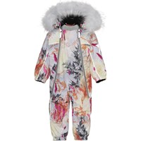 Pyxis er en funktionel flyverdragt til babyer og små børn i lyseblå med print farvede grene. Flyverdragten har aftagelig hætte med flot hvid faux fur pelskant, samt to skrå lynlåse på fronten, der gør det nemt at få dragten af og på, snefang i benåbning, gummistrop under foden og Molo's velkendte refleksstjerne på overarme og bag på benene. Flyverdragten er lavet i et vindtæt, vandtæt og åndbart materiale, mens foret og inderstoffet er recycled og fremstillet af genanvendt polyester. Flyverdragten har desuden tapede sømme. Dette produkt har en vandafvisende PFC-fri imprægnering (indeholder f.eks. ikke PFOS, PFOA og lignende). Vandsøjletrykket og åndbarheden er yderligere forbedret og er nu helt oppe på 15.000 mm i vandsøjletryk og åndbarhed på 15.000 g/m2/24t.
