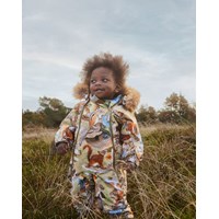 Pyxis er en af de mest elskede og kendte flyverdragter fra Molo, som passer perfekt til de mindre børn. Flyverdragtens mange kvaliteter, som ekstremt højt vandsøjletryk og en lige så høj grad af åndbarhed, kombineret med at Pyxis altid kommer i flotte print og farver, gør at denne flyverdragt er en sikker vinder hvert år. Dette er flyverdragten som ikke går på kompromis og selvfølgelig er den også fremstillet ved brug af ansvarlige og genanvendte materialer. Flyverdragten er i beige med print ef skovens små dyr og farverige svampe.