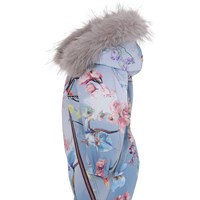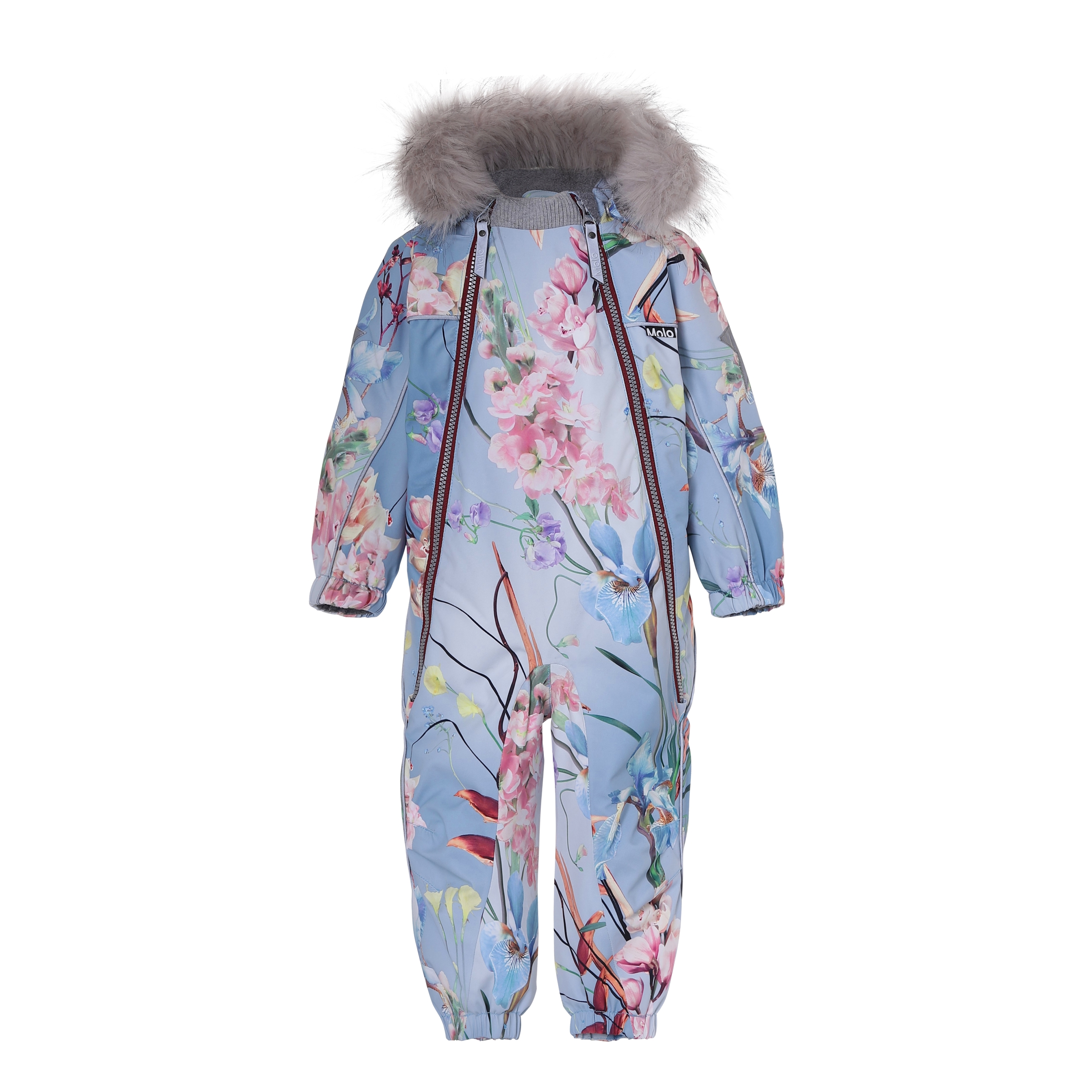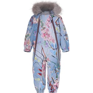 Pyxis er en funktionel flyverdragt til babyer og små børn i lyseblå med blomster print. Flyverdragten har aftagelig hætte med faux fur pelskant (som også kan tages af). Flyverdragten har to skrå lynlåse, der gør det nemt at få dragten af og på, snefang i benåbning, gummistrop under foden og Molo's velkendte refleksstjerne på overarme og bag på benene. Flyverdragten er lavet i et vindtæt, vandtæt og åndbart materiale, har 3M™ Thinsulate™ isolering, højkvalitetsfleece på udsatte områder og tapede sømme. Dette produkt har en vandafvisende PFC-fri imprægnering (indeholder f.eks. ikke PFOS, PFOA og lignende).Vandsøjletrykket og åndbarheden er yderligere forbedret og er nu helt oppe på 15.000 mm i vandsøjletryk og åndbarhed på 15.000 g/m2/24t.