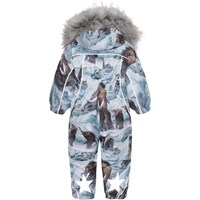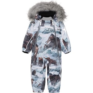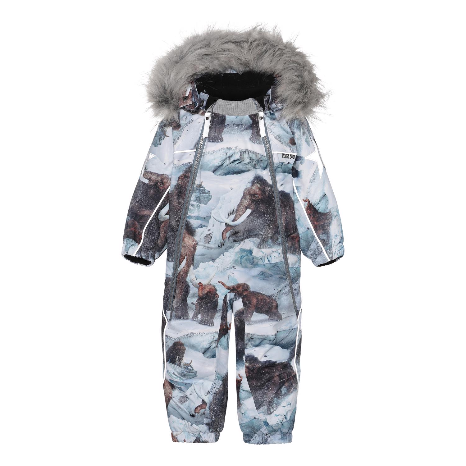 Pyxis er en funktionel flyverdragt til babyer og små børn i lyseblå med print af mammutter. Flyverdragten har aftagelig hætte med faux fur pelskant, samt to skrå lynlåse på fronten, der gør det nemt at få dragten af og på, snefang i benåbning, gummistrop under foden og Molo's velkendte refleksstjerne på overarme og bag på benene. Flyverdragten er lavet i et vindtæt, vandtæt og åndbart materiale, mens foret og inderstoffet er recycled og fremstillet af genanvendt polyester. Flyverdragten har desuden tapede sømme. Dette produkt har en vandafvisende PFC-fri imprægnering (indeholder f.eks. ikke PFOS, PFOA og lignende). Vandsøjletrykket og åndbarheden er yderligere forbedret og er nu helt oppe på 15.000 mm i vandsøjletryk og åndbarhed på 15.000 g/m2/24t.