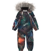 Pyxis er en af de mest elskede og kendte flyverdragter fra Molo, som passer perfekt til de mindre børn. Flyverdragtens mange kvaliteter, som ekstremt højt vandsøjletryk og en lige så høj grad af åndbarhed, kombineret med at Pyxis altid kommer i flotte print og farver, gør at denne flyverdragt er en sikker vinder hvert år. Dette er flyverdragten som ikke går på kompromis og selvfølgelig er den også fremstillet ved brug af ansvarlige og genanvendte materialer. Flyverdragten med print af rummer, planeter og rumskib.