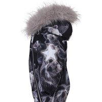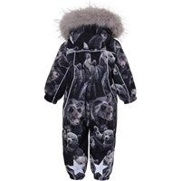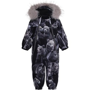 Pyxis er en funktionel flyverdragt til babyer og små børn med print af søde bjørne. Flyverdragten har aftagelig hætte med faux fur pelskant (som også kan tages af). Flyverdragten har to skrå lynlåse, der gør det nemt at få dragten af og på, snefang i benåbning, gummistrop under foden og Molo's velkendte refleksstjerne på overarme og bag på benene. Flyverdragten er lavet i et vindtæt, vandtæt og åndbart materiale, har 3M™ Thinsulate™ isolering, højkvalitetsfleece på udsatte områder og tapede sømme. Dette produkt har en vandafvisende PFC-fri imprægnering (indeholder f.eks. ikke PFOS, PFOA og lignende).Vandsøjletrykket og åndbarheden er yderligere forbedret og er nu helt oppe på 15.000 mm i vandsøjletryk og åndbarhed på 15.000 g/m2/24t.