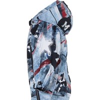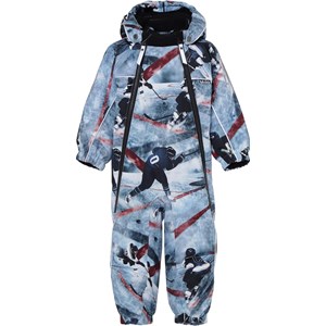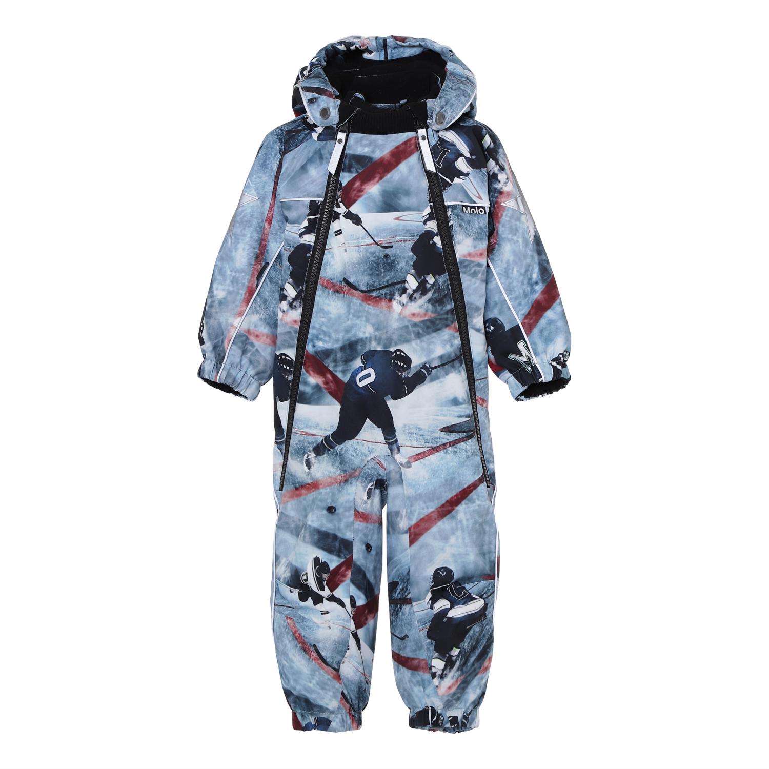 Pyxis er en funktionel flyverdragt til babyer og små børn med ishockey print i blå og bordeaux farver. Flyverdragten har aftagelig hætte, to skrå lynlåse, der gør det nemt at få dragten af og på, snefang i benåbning, samt gummistrop under foden og Molo's velkendte refleksstjerne på overarme og bag på benene. Flyverdragten er lavet i et vindtæt, vandtæt og åndbart materiale, har 3M™ Thinsulate™ isolering, højkvalitetsfleece på udsatte områder og tapede sømme. Dette produkt har en vandafvisende PFC-fri imprægnering (indeholder f.eks. ikke PFOS, PFOA og lignende). Vandsøjletrykket og åndbarheden er yderligere forbedret og er nu helt oppe på 15.000 mm i vandsøjletryk og åndbarhed på 15.000 g/m2/24t.