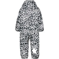 Wake er Molo's nye regndragt i mørkeblå og hvidt leopardprint. Dragten er god til til det meste vejr, men perfekt når det regner og blæser og er dejlig at have på, da dragten også har en god åndbarhed. Dragten har aftagelig hætte, lynlås ned langs fronten med overslag, der afskærmer for vind og vand, samt flere stjerne reflekser. Dette produkt har en vandafvisende PFC-fri imprægnering (indeholder f.eks. ikke PFOS, PFOA og lignende). Vandsøjletryk: 8.000 mm. Åndbarhed: 8.000 g/m2/24t