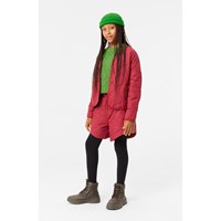 Mørkerød quiltet jakke med lange raglanærmer. Jakken lukkes med knapper ned langs fronten og har praktiske lommer i siden. Den har en almindelig pasform.
