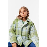 Lyseblå og grøn ternet jakke. Jakken har en løs pasform, reverkrave, paspoleret front lommer og dobbeltrads knaplukning. Jakken er foret som gør den behagelig at have på og er god i overgangsperioderne og koldere dage.