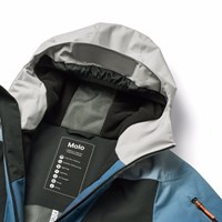 Vind- og vandtæt vinterjakke i genanvendt polyester i blå gradient farver. Jakken har en foret hætte, vandtætte lynlåse, lomme på ærmet til skikort og en indvendig lomme til ekstra opbevaring. Jakken har vindfang ved hoften velcro om håndledet og ærmeåbninger med tommelfingerhul, som effektivt holder sne, vind og vand ude. Ydermere er jakken foret med fleece, vatteret med 3M™ Thinsulate™, samt en tekst refleks for synlighed i trafikken.