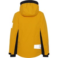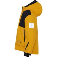 Alpine er en funktionel og vandtæt skijakke i gul med sorte detaljer på skulder, bryst og under armene. Jakken har aftagelig hætte, lynlås ned langs fronten, store rummelige lommer i siden, samt justerbart ærmegab med tætsluttende vindfang med hul til tommelfinger og refleksstribe bagpå. Jakkens ydermateriale er 51% recycled og fremstillet af genanvendt polyester, men foret og inderstoffet er recycled. Alpine er vindtæt, vandtæt og åndbar og har tapede sømme. Dette produkt har en vandafvisende PFC-fri imprægnering (indeholder f.eks. ikke PFOS, PFOA og lignende). Vandsøjletrykket og åndbarheden er yderligere forbedret og er nu helt oppe på 15.000 mm i vandsøjletryk og åndbarhed på 15.000 g/m2/24t.