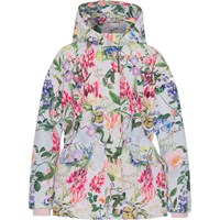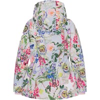 Carole er en funktionel parkajakke med en feminin pasform i lyseblå med smukt blomster print. Jakken har aftagelig hætte, lynlås ned langs fronten, indvendig løbegang i taljen, lommer foran, rib ved ærmeafslutning og Molo's velkendte stjernerefleks bagpå. Carole kan bruges i alt slags vejr, da materialet er vandtæt og åndbart samt har tapede sømme. Produktet har en vandafvisende PFC-fri imprægnering (indeholder f.eks. ikke PFOS, PFOA og lignende). Vandsøjletryk: 8.000 mm. Åndbarhed: 5.000 g/m2/24t.