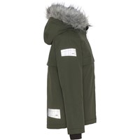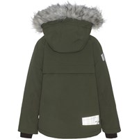 Castor Fur er en foret og vandtæt vinterjakke i grøn. Castor er perfekt både til de ekstrem kolde og almindelige vintre, grundet dets utrolig høje åndbarhed samt isolering. Den høje åndbarhed er med til at hjælpe kropstemperaturen regulere sig og sørge for, at dit barn hverken bliver for kold eller varm. På varmere vinterdage kan barnet derfor nøjes med tynde lag under og på dage med voldsomme tocifrede minusgrader kan man supplere med et ekstra lag indenunder. Har du er stillesiddende barn vil Castor også være et oplagt valg.  Jakken har aftagelig faux fur pelskrave på hætten, skjult lynlås med overfald, skjulte lommer, synlige reflekser på siden af ærmet samt bagpå. Jakken er lavet i et vindtæt, vandtæt og åndbart materiale. Ydermaterialet er fremstillet af 59% recycled nylon, 3M™ Thinsulate™ foret er fremstillet af 78% recycled polyester og inderstoffet af 100% recycled polyester. Dette produkt har en vandafvisende PFC-fri imprægnering (indeholder f.eks. ikke PFOS, PFOA og lignende). Vandsøjletrykket og åndbarheden er yderligere forbedret og er nu helt oppe på 15.000 mm i vandsøjletryk og åndbarhed på 15.000 g/m2/24t.