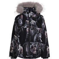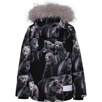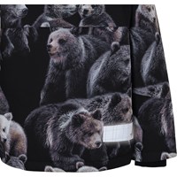Castor er en foret og vandtæt vinterjakke med print af søde bjørne. Jakken har aftagelig hætte med faux fur pelskant (som også kan tages af), skjult lynlås med overfald, skjulte lommer, Molo's velkendte stjernerefleks bagpå, samt elastik ved ærmeafslutning og bund. Jakken er lavet i et vindtæt, vandtæt og åndbart materiale, har 3M™ Thinsulate™ isolering, højkvalitetsfleece på udsatte områder og tapede sømme. Dette produkt har en vandafvisende PFC-fri imprægnering (indeholder f.eks. ikke PFOS, PFOA og lignende). Vandsøjletrykket og åndbarheden er yderligere forbedret og er nu helt oppe på 15.000 mm i vandsøjletryk og åndbarhed på 15.000 g/m2/24t.