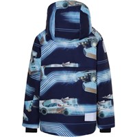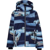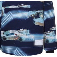 Castor er en foret og vandtæt vinterjakke i med print af fremtidens tidsmaskiner. Jakken har aftagelig hætte, skjult lynlås med overfald, skjulte lommer, Molo's velkendte stjernerefleks bagpå, samt elastik ved ærmeafslutning og bund. Jakken er lavet i et vindtæt, vandtæt og åndbart materiale, har 3M™ Thinsulate™ isolering, højkvalitetsfleece på udsatte områder og tapede sømme. Dette produkt har en vandafvisende PFC-fri imprægnering (indeholder f.eks. ikke PFOS, PFOA og lignende). Vandsøjletrykket og åndbarheden er yderligere forbedret og er nu helt oppe på 15.000 mm i vandsøjletryk og åndbarhed på 15.000 g/m2/24t.