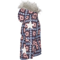 Cathy er en vinterjakke i en klasse for sig. Vinterjakkens mange kvaliteter, som ekstremt højt vandsøjletryk og en lige så høj grad af åndbarhed, kombineret med at Cathy altid kommer i flotte print og farver, gør at denne jakke er en sikker vinder hvert år. Dette er vinterjakken som ikke går på kompromis og selvfølgelig er den også fremstillet ved brug af ansvarlige og genanvendte materialer. Cathy er her med farverigt print af Molo's egne hæklemasker, som både indeholder regnbuer, glade ansigter, svampe, solsikker og peacetegn.