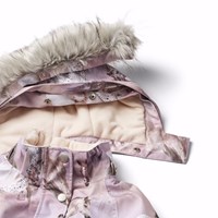 Vind- og vandtæt vinterjakke i genanvendt polyester. Jakken er i lyserøde nuancer og har et flot print af heste. Jakken har aftagelig foret hætte med aftagelig faux fur krave samt lynlås med overfald, der holder sne, vind og vand ude. Jakken er udstyret med en stor refleks på ryggen, som sikrer synlighed i trafikken. Jakken har foret forlommer samt en justerbar elastik i taljen som giver form og tæthed omkring kroppen. Ærmerne er udstyret med ribkanter, der effektivt holder vind, sne og regn ude og samtidig sikrer, at vanterne forbliver på plads. Jakken er foret med 3M™ Thinsulate™, hvis lethed giver barnet en større bevægelighed uden at gå på kompromis med isoleringsevnen.