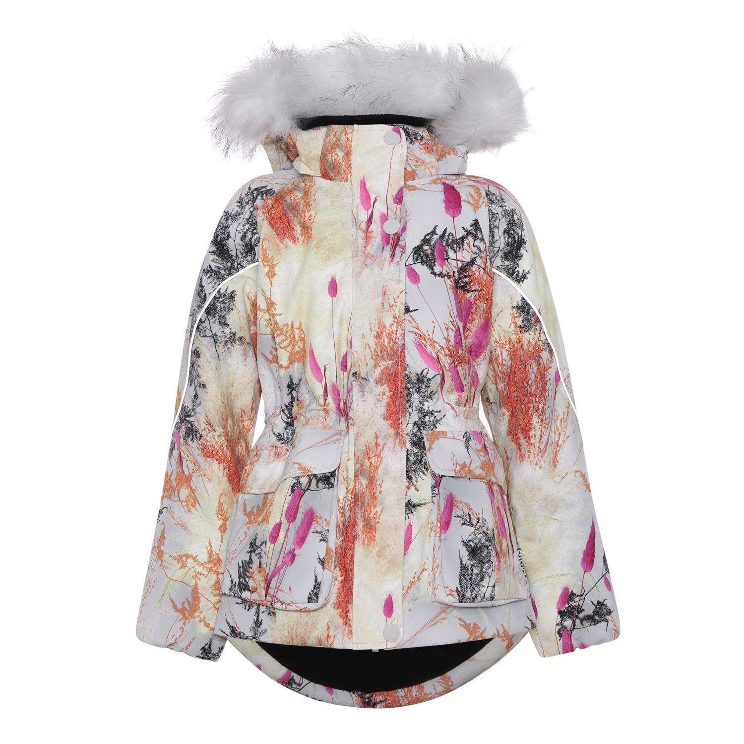 Cathy Fur er en vandtæt vinterjakke i blå med print af farvede grene. Jakken har aftagelig hætte med faux fur pelskant (som også kan tages af), lynlås ned langs fronten, rummelige lommer, justerbar, elastisk talje samt Molo's velkendte stjernerefleks bagpå. Jakken er lavet i et vindtæt, vandtæt og åndbart materiale, mens foret og inderstoffet er recycled og fremstillet af genanvendt polyester. Dette produkt har en vandafvisende PFC-fri imprægnering (indeholder f.eks. ikke PFOS, PFOA og lignende). Vandsøjletrykket og åndbarheden er yderligere forbedret og er nu helt oppe på 15.000 mm i vandsøjletryk og åndbarhed på 15.000 g/m2/24t.