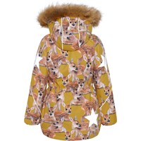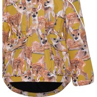 Cathy Fur er en vandtæt vinterjakke i gul med print af rådyr. Jakken har aftagelig hætte med faux fur pelskant (som også kan tages af), lynlås ned langs fronten, rummelige lommer, justerbar, elastisk talje samt Molo's velkendte stjernerefleks bagpå. Jakken er lavet i et vindtæt, vandtæt og åndbart materiale, mens foret og inderstoffet er recycled og fremstillet af genanvendt polyester. Dette produkt har en vandafvisende PFC-fri imprægnering (indeholder f.eks. ikke PFOS, PFOA og lignende). Vandsøjletrykket og åndbarheden er yderligere forbedret og er nu helt oppe på 15.000 mm i vandsøjletryk og åndbarhed på 15.000 g/m2/24t.