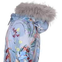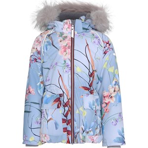 Cathy Fur er en vandtæt vinterjakke i lyseblå med blomsterprint. Jakken har aftagelig hætte med faux fur pelskant (som også kan tages af), lynlås ned langs fronten, rummelige lommer, justerbar, elastisk talje samt Molo's velkendte stjernerefleks bagpå. Jakken er lavet i et vindtæt, vandtæt og åndbart materiale, har 3M™ Thinsulate™ isolering, højkvalitetsfleece på udsatte områder og tapede sømme. Dette produkt har en vandafvisende PFC-fri imprægnering (indeholder f.eks. ikke PFOS, PFOA og lignende). Vandsøjletrykket og åndbarheden er yderligere forbedret og er nu helt oppe på 15.000 mm i vandsøjletryk og åndbarhed på 15.000 g/m2/24t.
