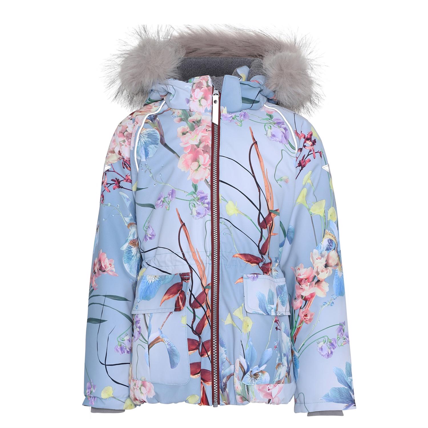 Cathy Fur er en vandtæt vinterjakke i lyseblå med blomsterprint. Jakken har aftagelig hætte med faux fur pelskant (som også kan tages af), lynlås ned langs fronten, rummelige lommer, justerbar, elastisk talje samt Molo's velkendte stjernerefleks bagpå. Jakken er lavet i et vindtæt, vandtæt og åndbart materiale, har 3M™ Thinsulate™ isolering, højkvalitetsfleece på udsatte områder og tapede sømme. Dette produkt har en vandafvisende PFC-fri imprægnering (indeholder f.eks. ikke PFOS, PFOA og lignende). Vandsøjletrykket og åndbarheden er yderligere forbedret og er nu helt oppe på 15.000 mm i vandsøjletryk og åndbarhed på 15.000 g/m2/24t.