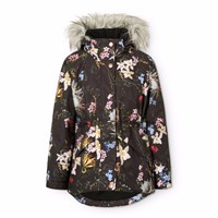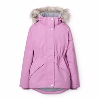Vind- og vandtæt vinterjakke i genanvendt polyester med et print af hvide pegasusser i lyserøde pastelfarvede skyer. Jakken har en aftagelig foret hætte med faux fur krave, lynlås med overfald, foret lynlåslommer, snefang i ærmerne samt en justerbar elastik i taljen som giver tæthed omkring kroppen og effektivt holder vinden ude. Jakken er udstyret med en stor refleks på ryggen, som sikrer synlighed i trafikken. Ydermere er jakken foret med fleece, samt vatteret med 3M™ Thinsulate™.