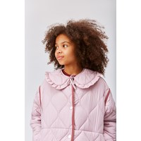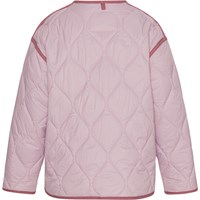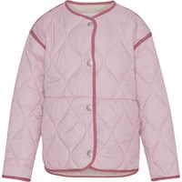 Heisley er en lyserød quilted jakke med røde kontrast kanter. Vesten har knappelukning på fronten.