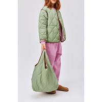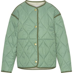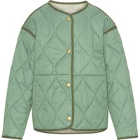 Heisley er en grøn quilted jakke med mørkegrønne kontrast kanter. Vesten har knappelukning på fronten.