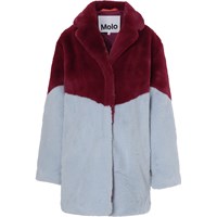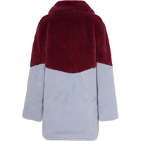 Haili er en blød faux fur frakke i en flot farve kombi af mørkerød og lyseblå. Kraven kan både bruges foldet op og ned. Frakken han trykknap lukning.